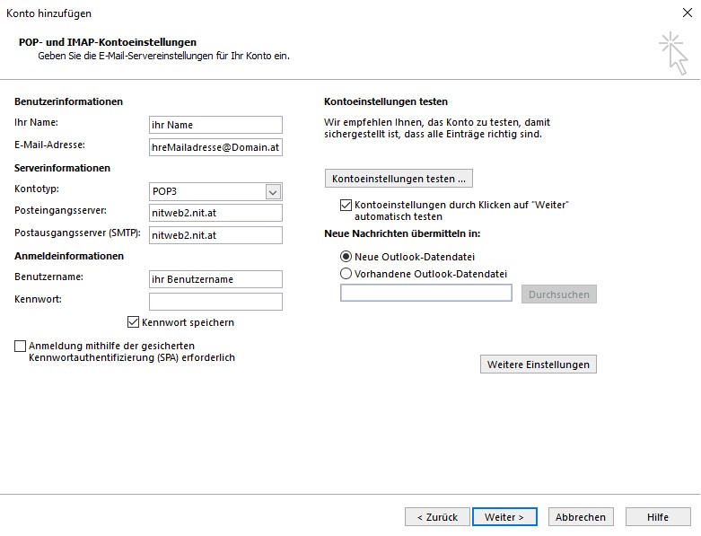 POP3 Konto einrichten