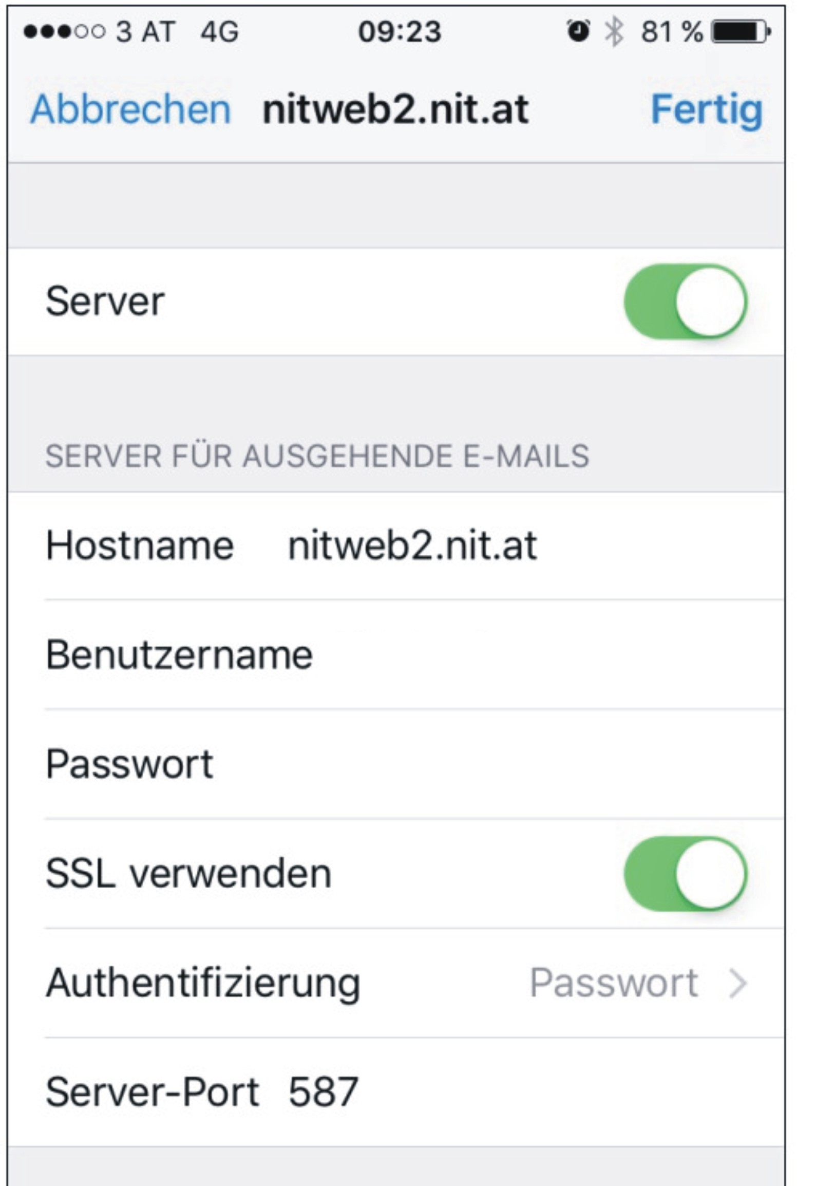 SSL ist einzuschalten un der Server-Port muss 587 sein.